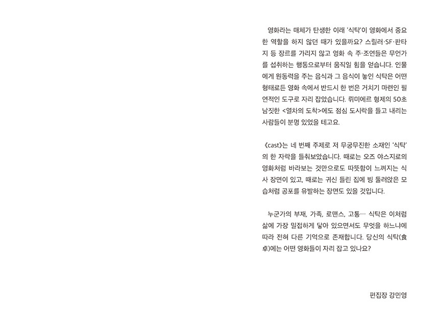 영화 리뷰 매거진 <CAST>는 매 호 하나의 단어를 주제로 선정해 되새겨볼 만한 영화를 이야기합니다.