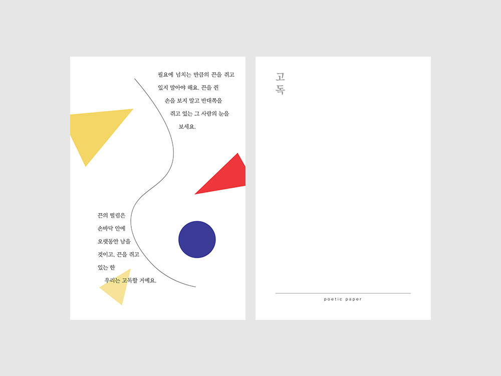 Poetic Paper fills poetic moments on paper. Every paper will inspire you to love someone. 포에틱 페이퍼는 종이 위에 시적인 순간들을 채웁니다. 모든 페이퍼는 당신이 누군가를 사랑하도록 영감을 줄 것입니다.