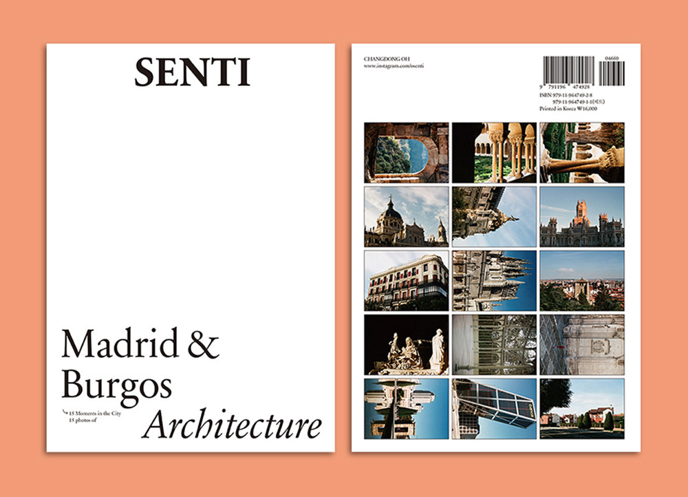 ‘SENTI’는 오창동 사진가가 세계 각국을 여행하며 촬영한 필름사진을 엽서집 형태로 묶어내는 시리즈 출판물입니다. 프랑스어 ‘senti’는 진솔한, 감각, 느낌 등을 뜻하는데요. 이 시리즈명에 걸맞게, 여행자의 시선에서 느낀 도시의 풍광을 담담하게 전달하고자 합니다. 엽서 앞면에는 사진 이미지가 전면으로 들어가고, 뒷면에는 사진 촬영 당시의 뒷이야기가 짧게 적혀있습니다. 또한, 뒤표지에서는 내지에 수록된 엽서 이미지를 한눈에 볼 수 있습니다. ‘SENTI’는 엽서집 형태이므로, 사진책처럼 들춰보아도 좋고 또는 한 장씩 뜯어 나만의 좋아하는 공간에 살포시 올려놓거나 사랑하는 이에게 마음을 적어 전할 수 있습니다. 책처럼 사진을 감상하며 미처 가보지 못한 도시의 모습을 상상해볼 수 있다면 좋겠지요. 또는, 그중에서도 당신이 특별히 좋아하는 낱장의 엽서를 골라 이를 통해 바쁜 일상 속에서 한숨 돌릴 수 있다면 정말 좋겠습니다.