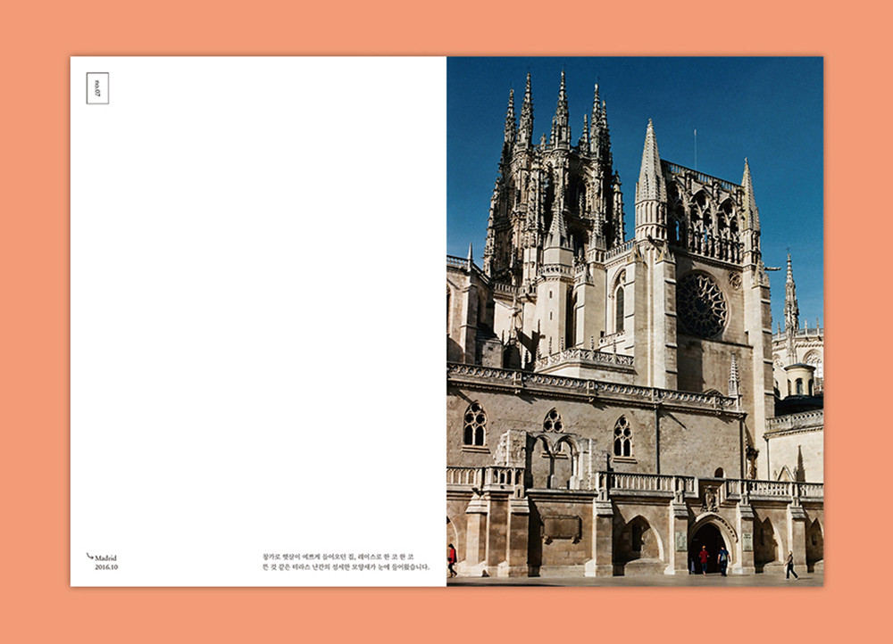 1) Madrid&Burgos: Architecture 스페인 마드리드와 부르고스의 건축물 모습을 담았습니다. 아주 오래된 성벽부터 현대적인 느낌의 건물까지, SENTI 1편을 통해 스페인의 웅장한 풍광을 살펴보세요.