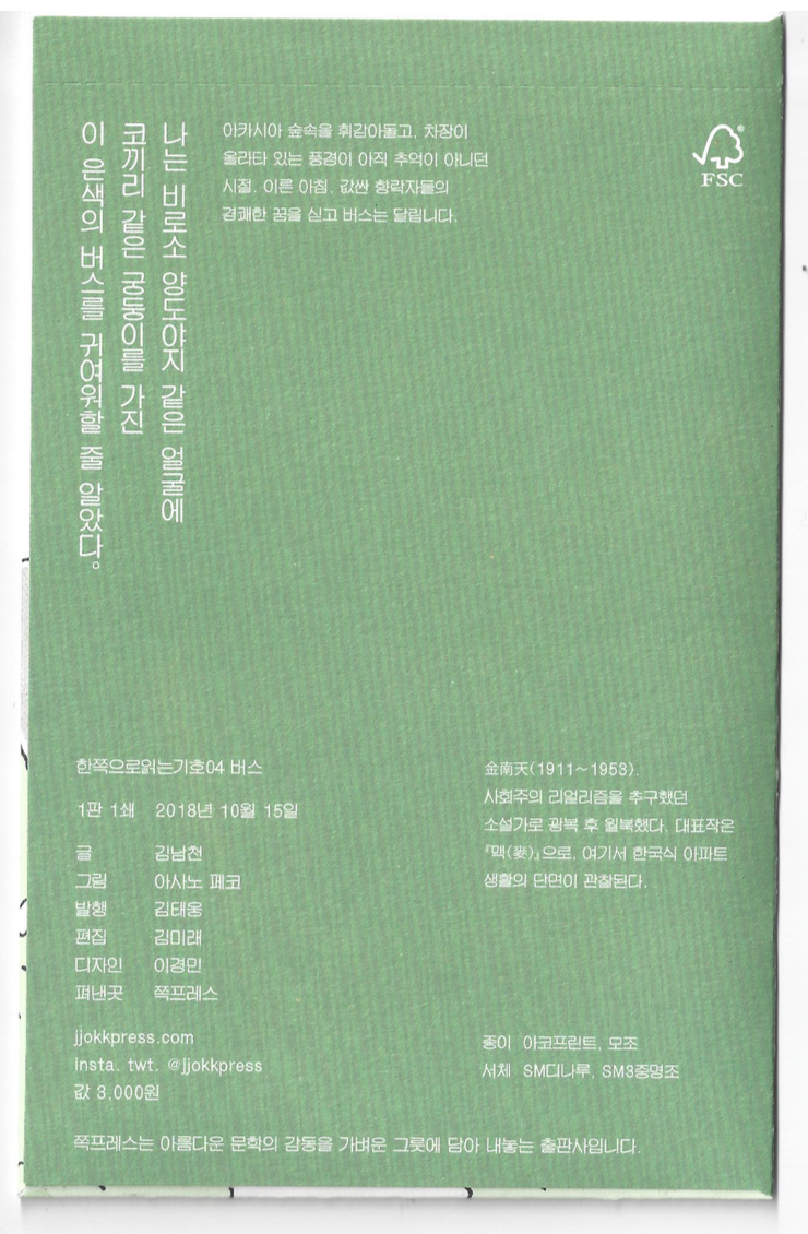 한쪽으로읽는기호04 버스/ 김남천 / 쪽프레스