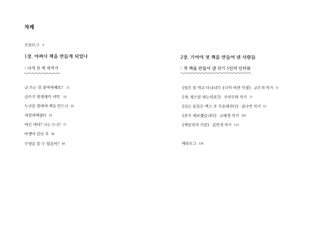 그리고 첫 책을 만들어 낸 다섯 명의 독립출판 작가들의 인터뷰가 담겨있습니다.