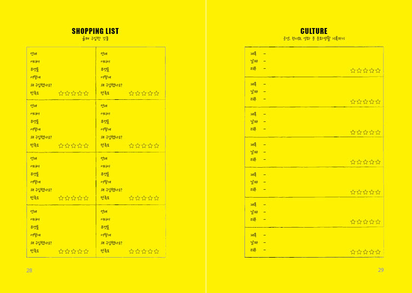 일 년 동안 산 물건들의 별점을 채워보기도 합니다.