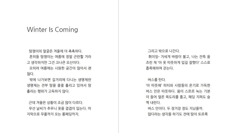 땀쟁이와 안 땀쟁이가 서로를 이해하는 데 도움을 주는 참고서가 되었으면 합니다.