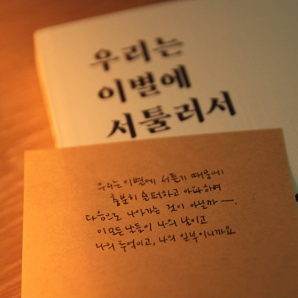 우리는 이별에 서툴러서 자주 아프고 때론 부서지지만 그럼에도 불구하고 다시 살아가는 사람들. 우리는 오늘을 살아가야 할 사람들이다.