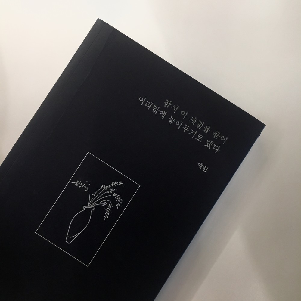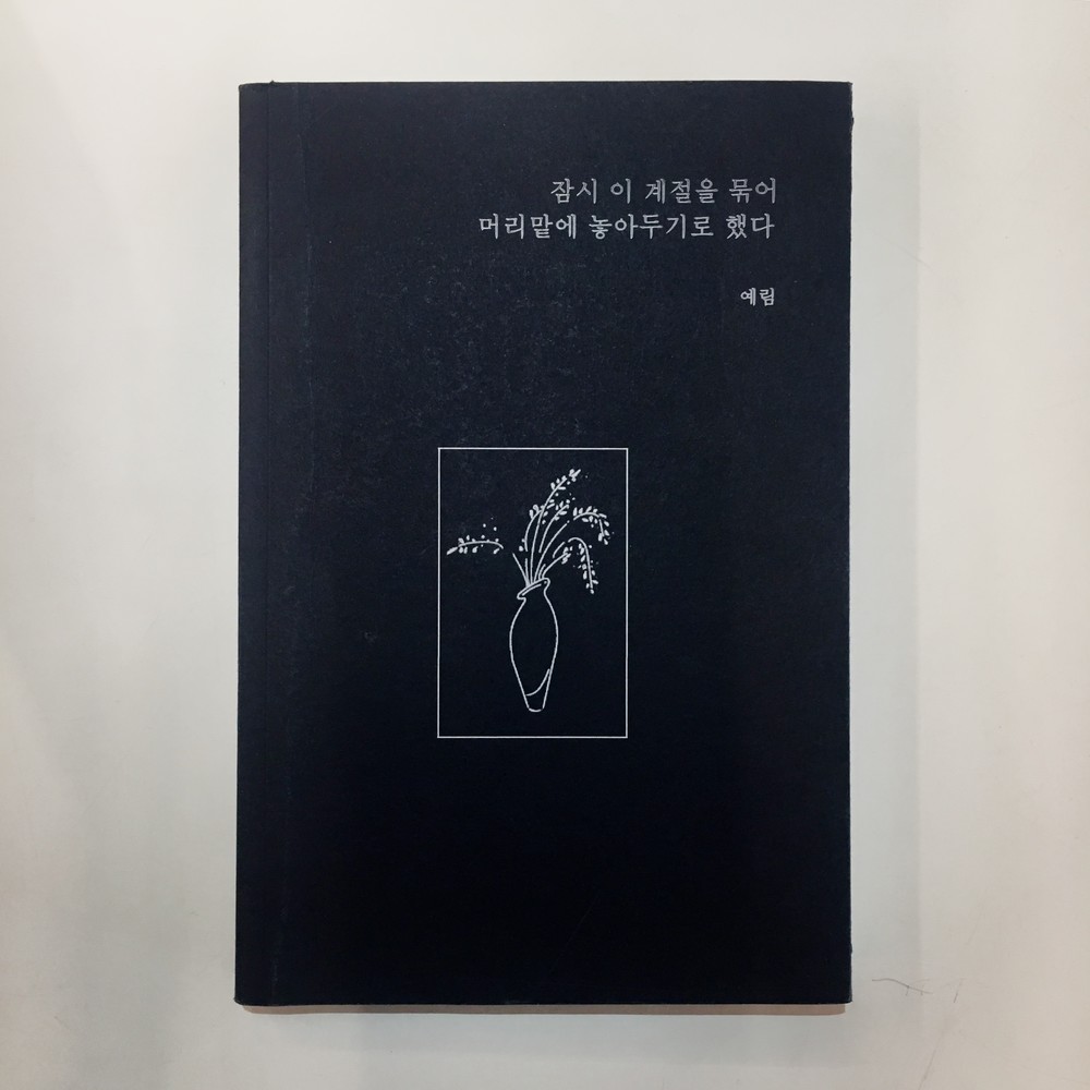 제목 : 잠시 이 계절을 묶어 머리맡에 놓아두기로 했다. 저자 : 예림 판형 : 125mm*185mm 쪽수 : 164p (표지 : 그문드컬러매트300g, 내지 : 백색모조지 120g ) 가격 : 16,000원