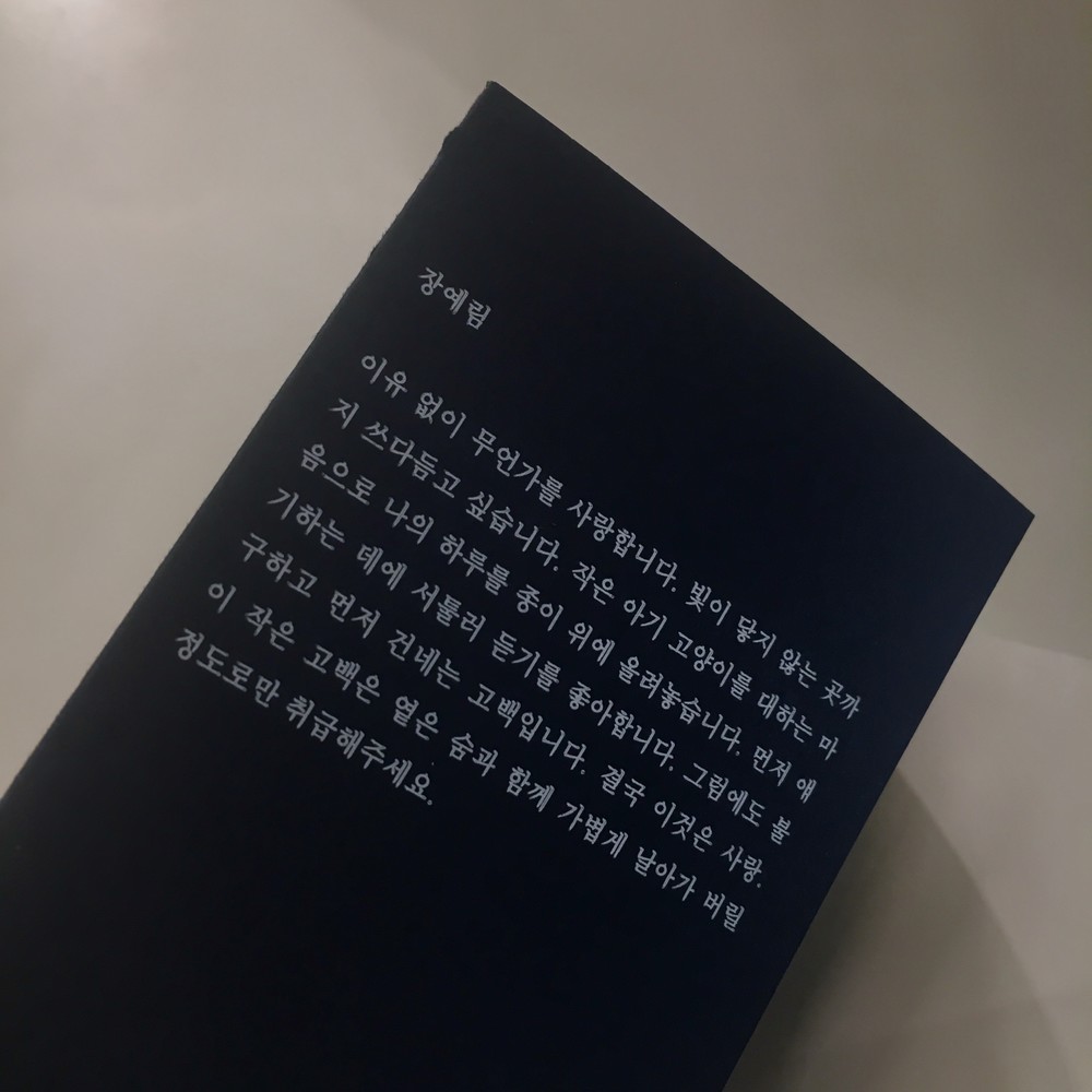 오랜 시간 제 속에 있던, 혹은 곁에 있던 많은 마음들에 관하여 글을 써보았습니다. 작은 아이 고양이를 대하는 마음으로 나의 하루를 종이 위에 올려놓습니다. 결국 이것은 사랑, 이 작은 고백은 옅은 숨과 함꼐 가볍게 날아가 버릴 정도로만 취급해주세요.