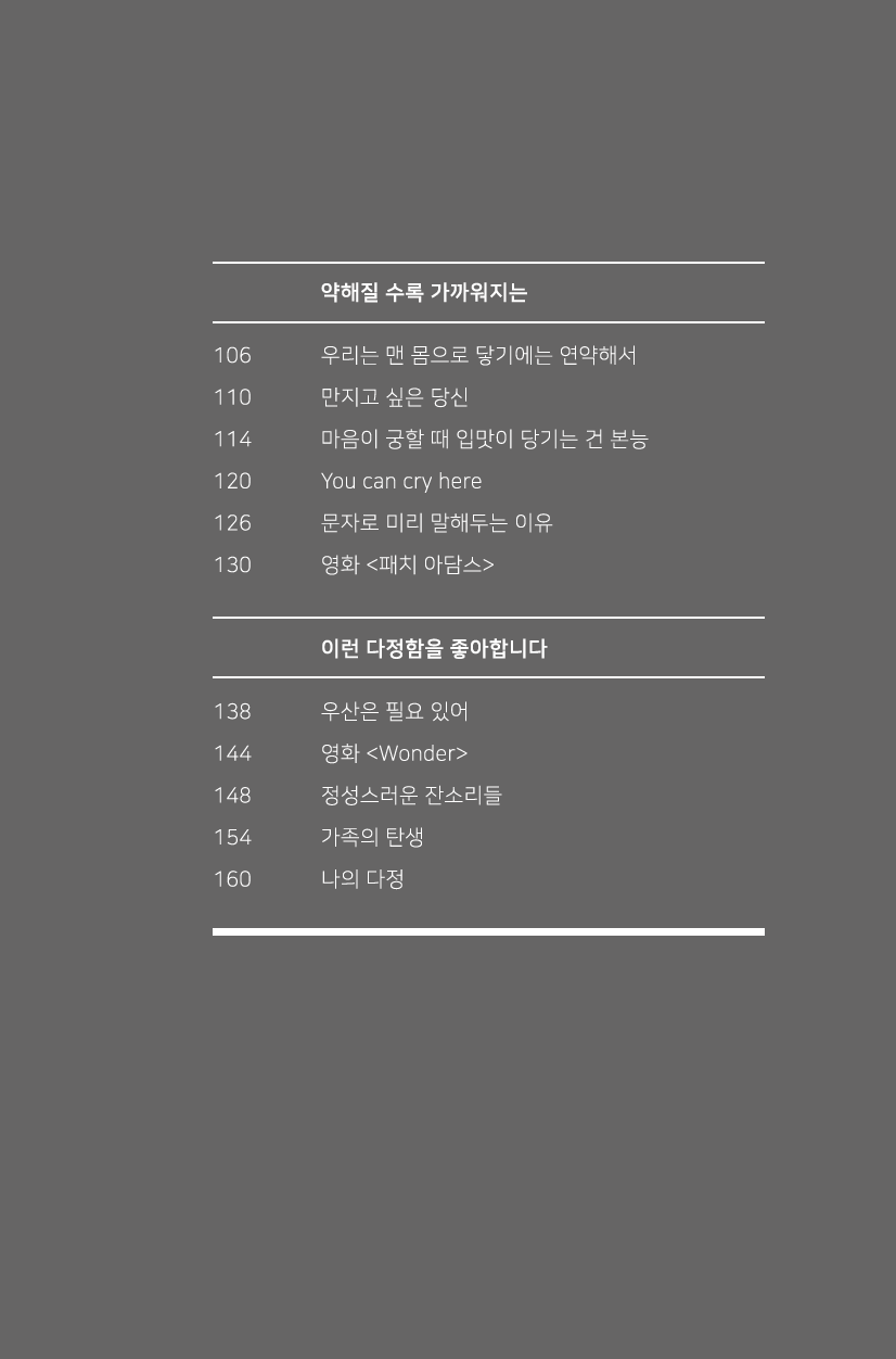 짧지만 포근한 저의 기억이 누군가의 다정함을 읽는 데 도움이 되면 좋겠습니다.