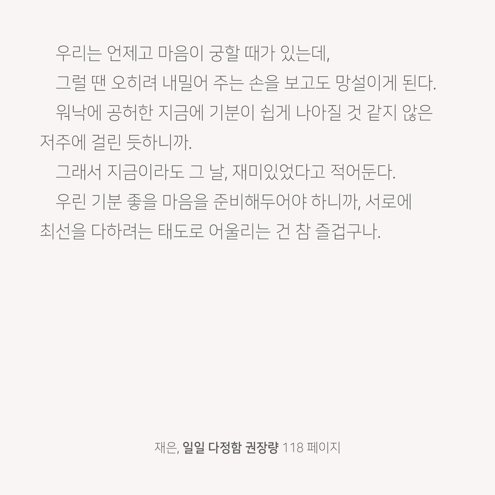 서로에 최선을 다하려는 태도로 어울리는 건 참 즐겁구나.