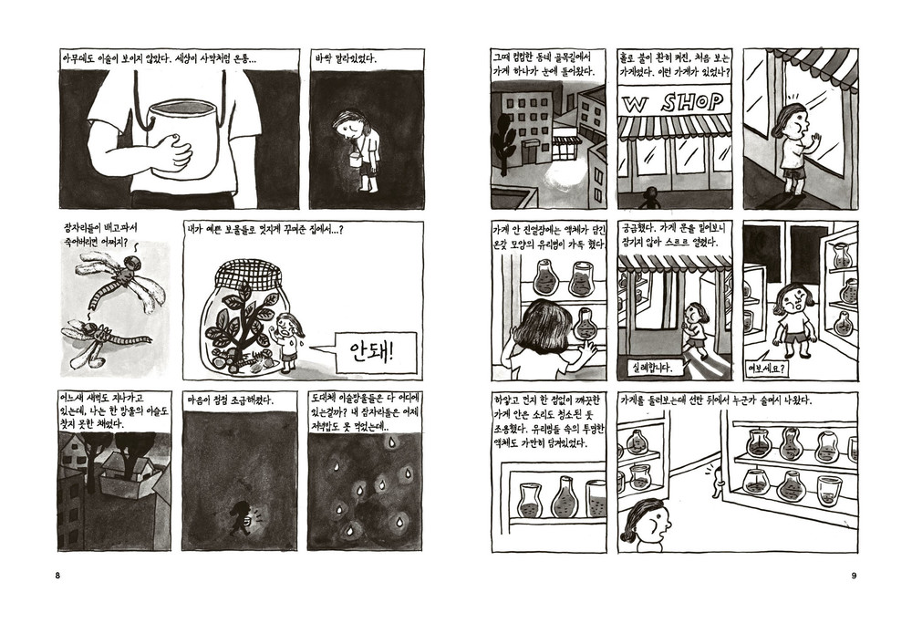 잠자리를 너무 좋아해서 애완동물로 키우기로 마음먹은 어린아이인 '내’가 이슬을 파는 가게의 점원