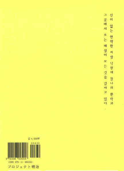 "신이 없는 연약한 지상 낙원에 찰나의 환락과 그곳에서 오는 애상이 모든 것을 감싸고 있다."