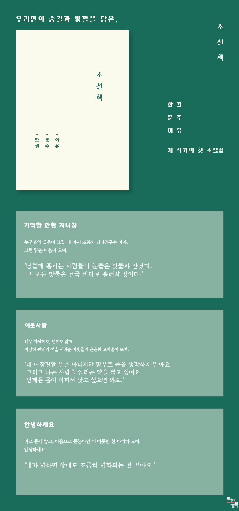 우리만의 숨결과 빛깔을 담은 소설집을 만들었습니다.