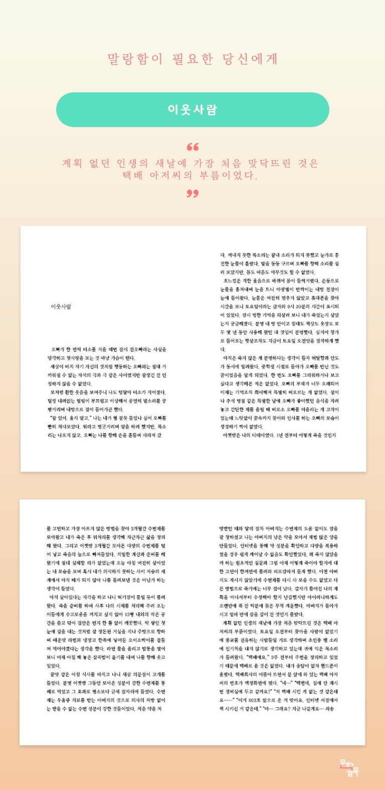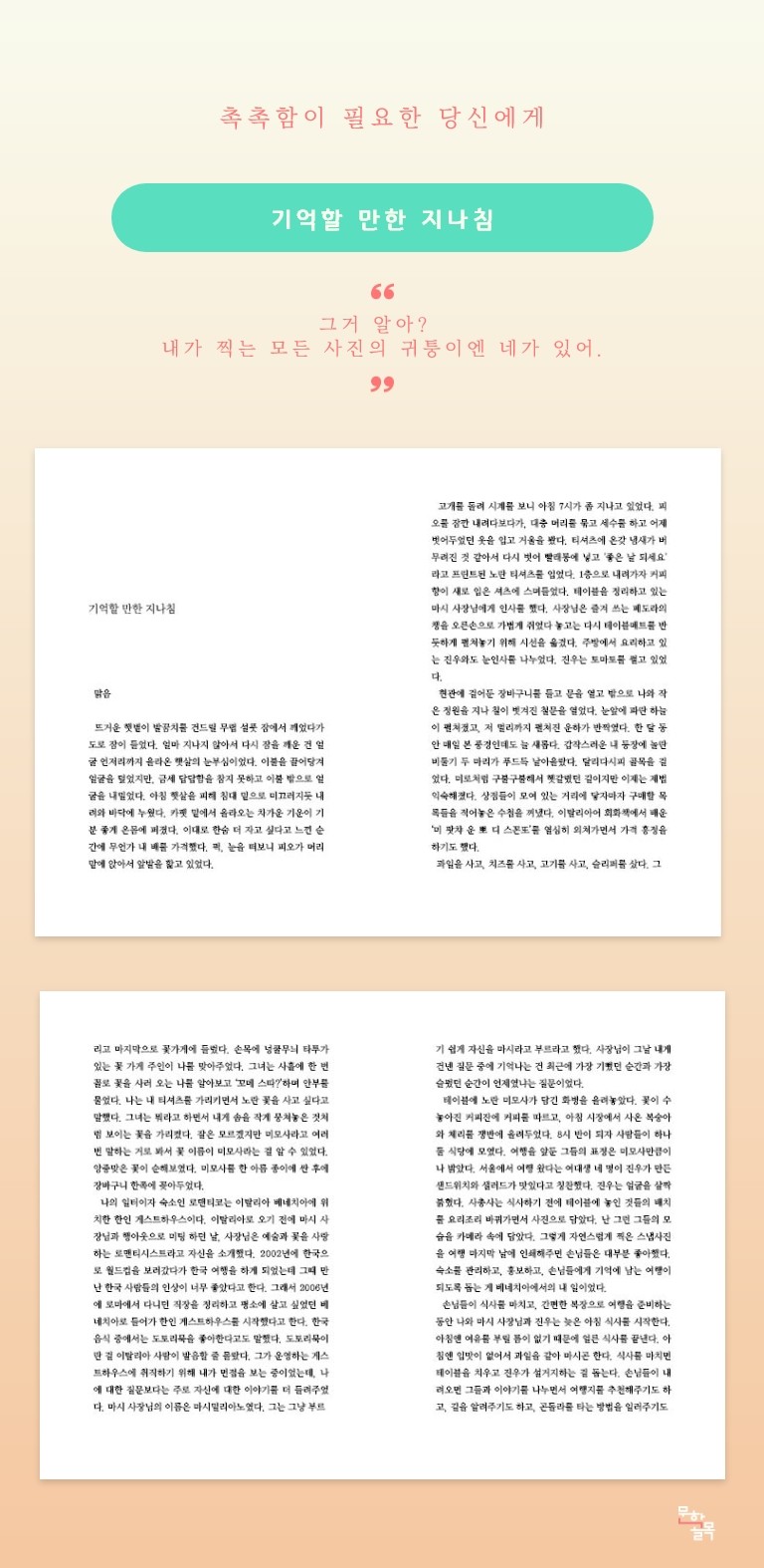 어느덧 따뜻한 미소를 건넬 수 있는 부드러운 시선을 가지게 된다.