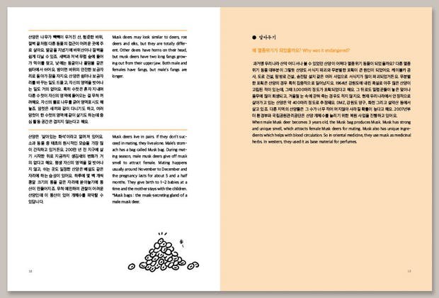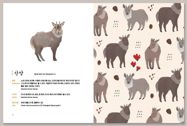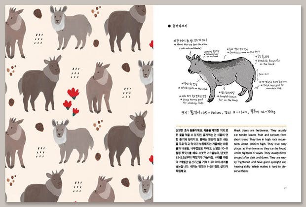 각 장은 동물에 대한 간결한 설명, 패턴 일러스트, 세부 설명 그리고 알아두면 좋을 이야기로 구성되어 있습니다. 또, 이번 책이 세계적인 가치를 품고있는 DMZ에 관한 책인 만큼 국문과 영문이 같이 수록됩니다. (외국인 친구들에게 선물하기 딱이겠죠!?)