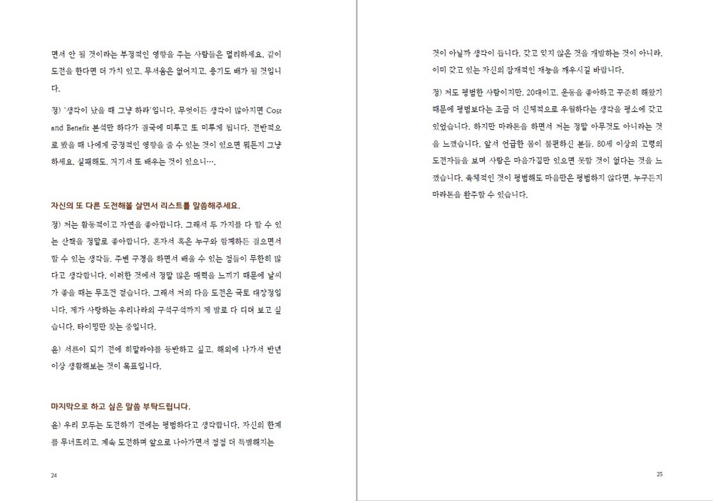 9~10가지의 질문을 통한 심층 인터뷰로 그 도전을 어떻게 완성했는지에 대한 경험담을 담았습니다.