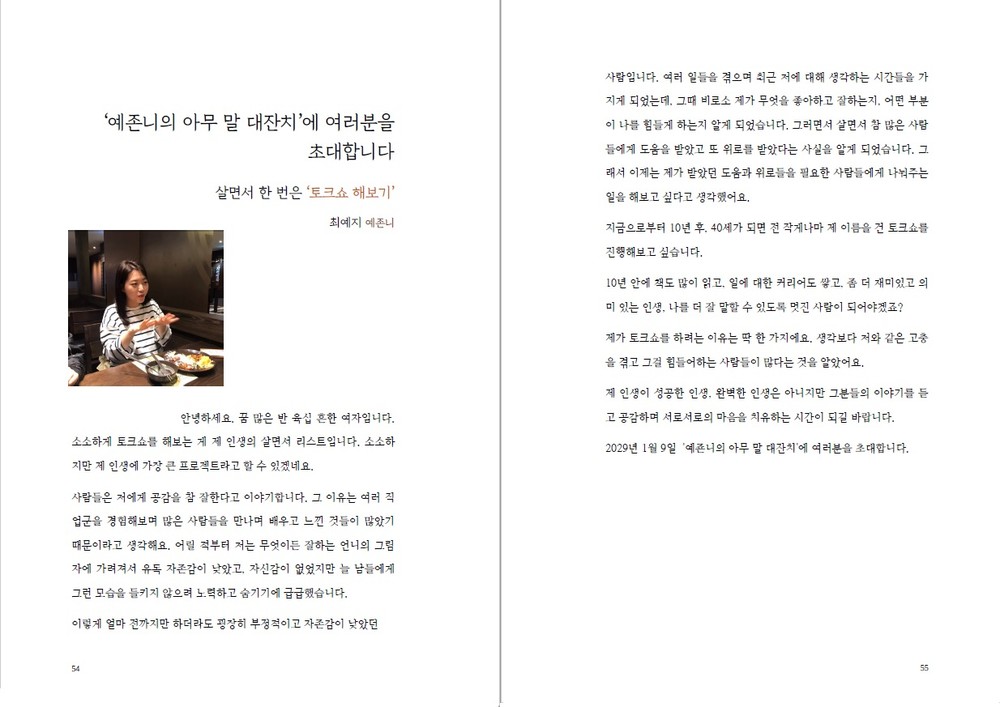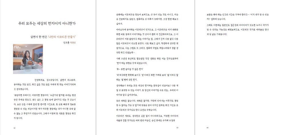 중간 코너로 '아직은 미완성인 살면서 리스트를 소개합니다'에서는 10명의 다양하고 간단한 인터뷰를 담았습니다.
