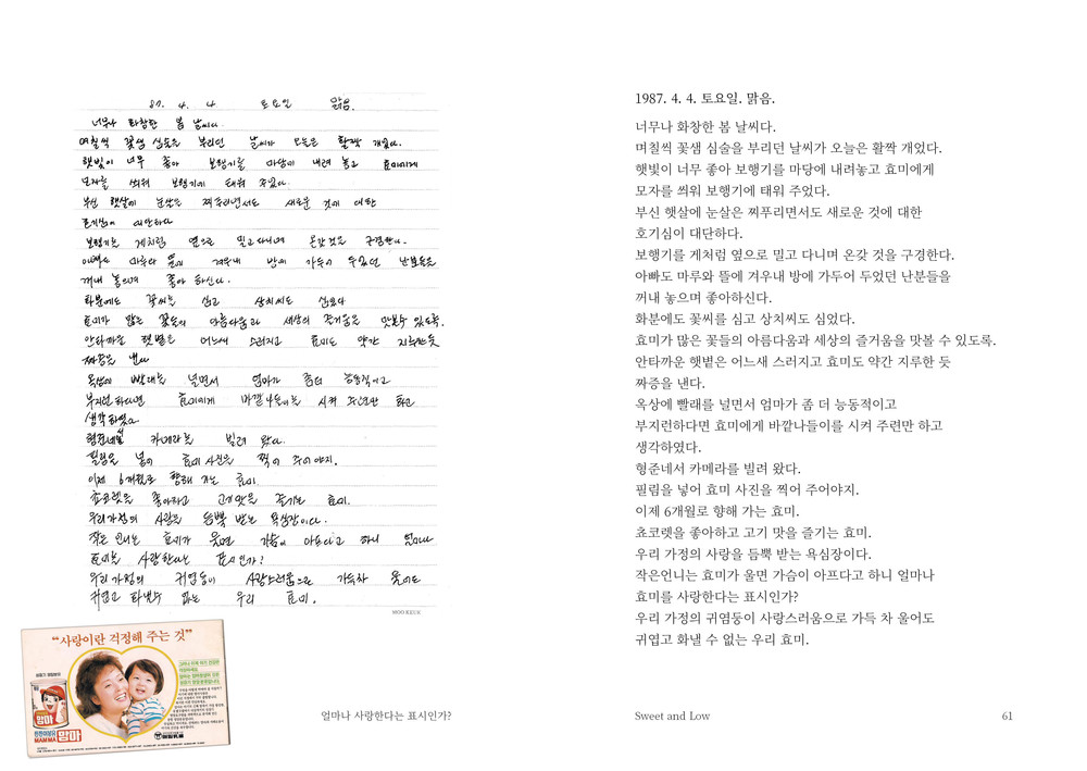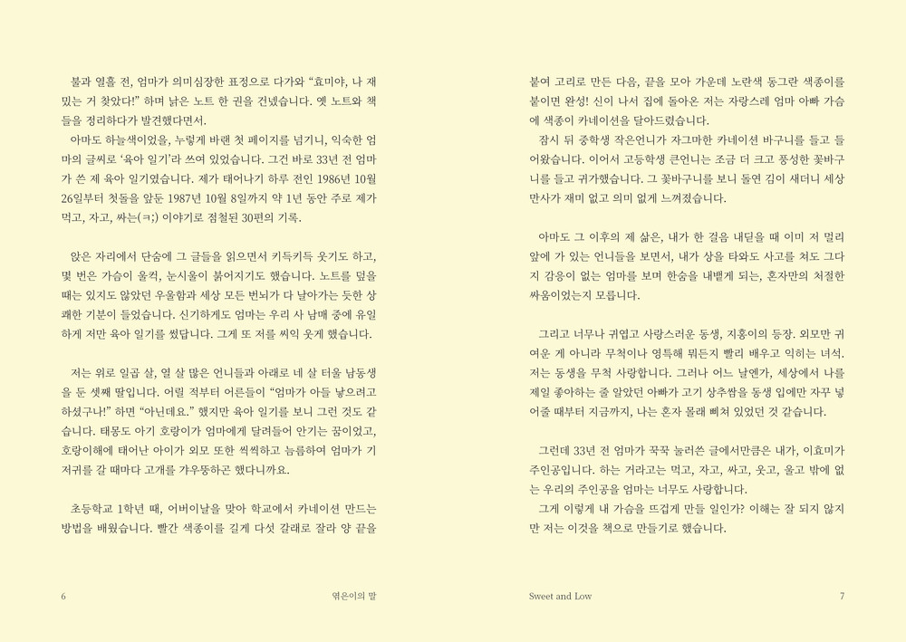엄마가 쓰신 동화책을 만들던 중, 우연히 30여 년 전 엄마가 쓴 자신의 육아 일기를 발견해 그 육아 일기를 모아 책으로 엮었다.