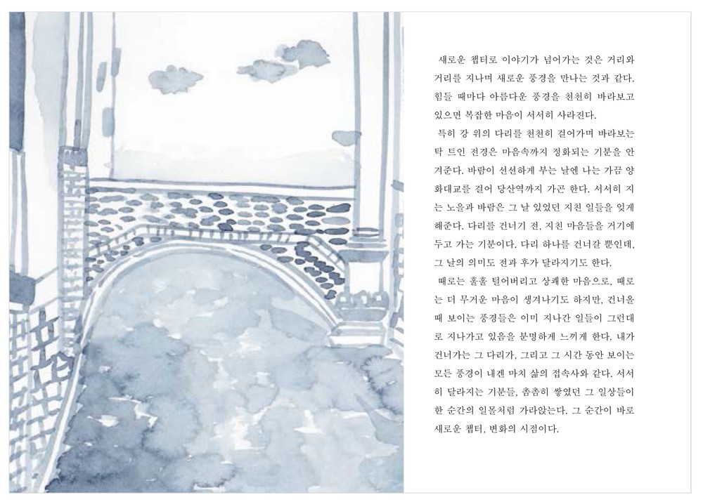 / 가끔 삶을 채우는 노력들은 명확하게 설명할 수 없는 일들 속에, 내 인색이 구체적으로 어디로 향하고 있는지 알아내려는 일 같기도 하다. 그런 일들을 설명하기 위해 삶이라는 문장 속에서 다양한 전치사들을 수집하며 내 인생의 모습들을 구체적으로 설계해가는 것이 아닐까.