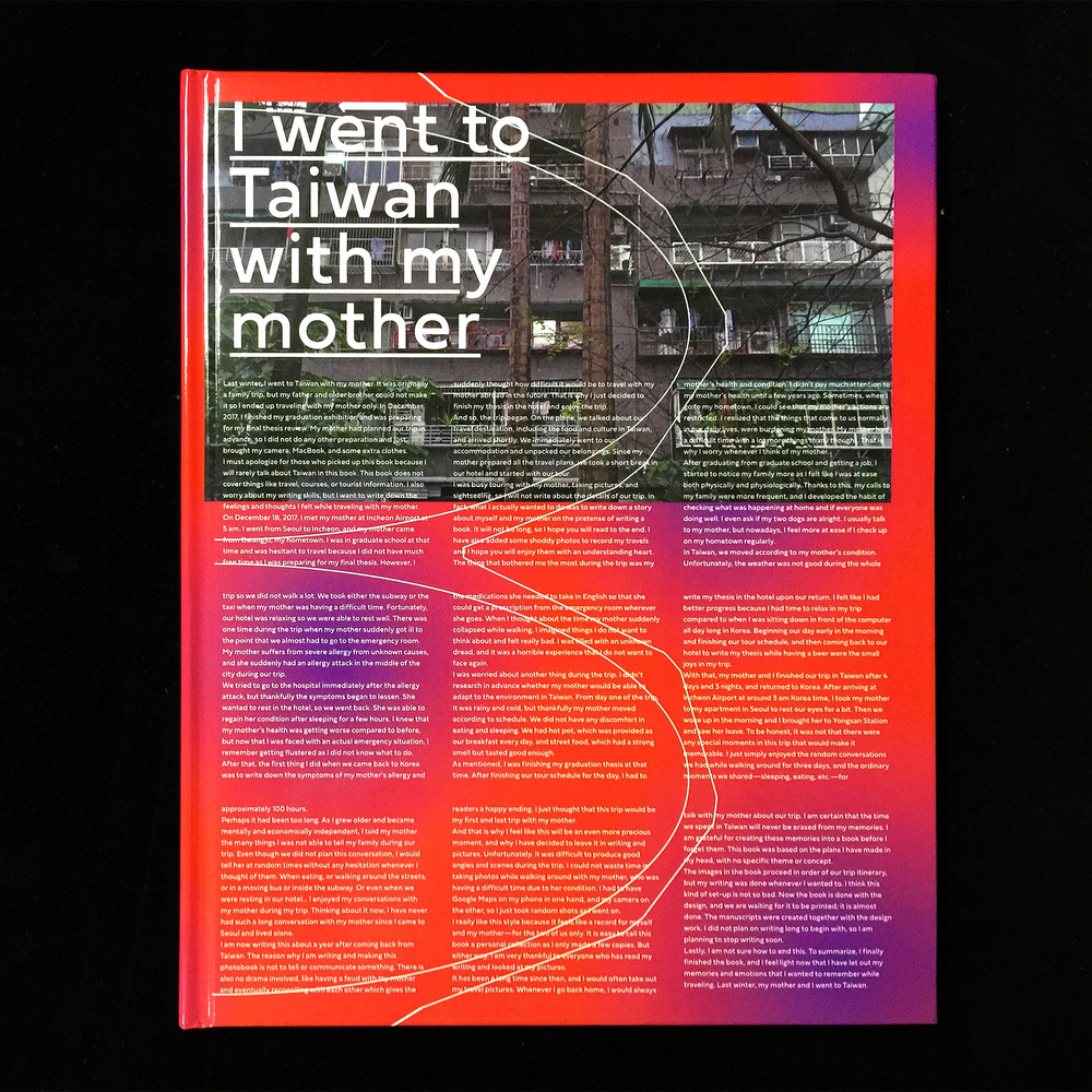 책을 펼친 분들께 죄송하지만, 이 책에서 대만에 관한 언급은 거의 하지 않을 생각입니다.이 책은 여행지나 코스, 관광정보 같은 것들을 다루지 않습니다. 글 쓰는 재주가 뛰어나지 않아 걱정은 되지만, 어머니와 여행을 다니며 느꼈던 감정이나 생각을 사진과 함께 짧게 적어보려 합니다.