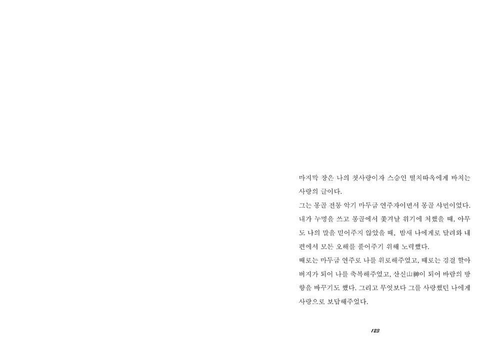 몽골 샤먼이자 마두금 연주자인 첫사랑에게 바치는 사랑의 시 모음입니다.