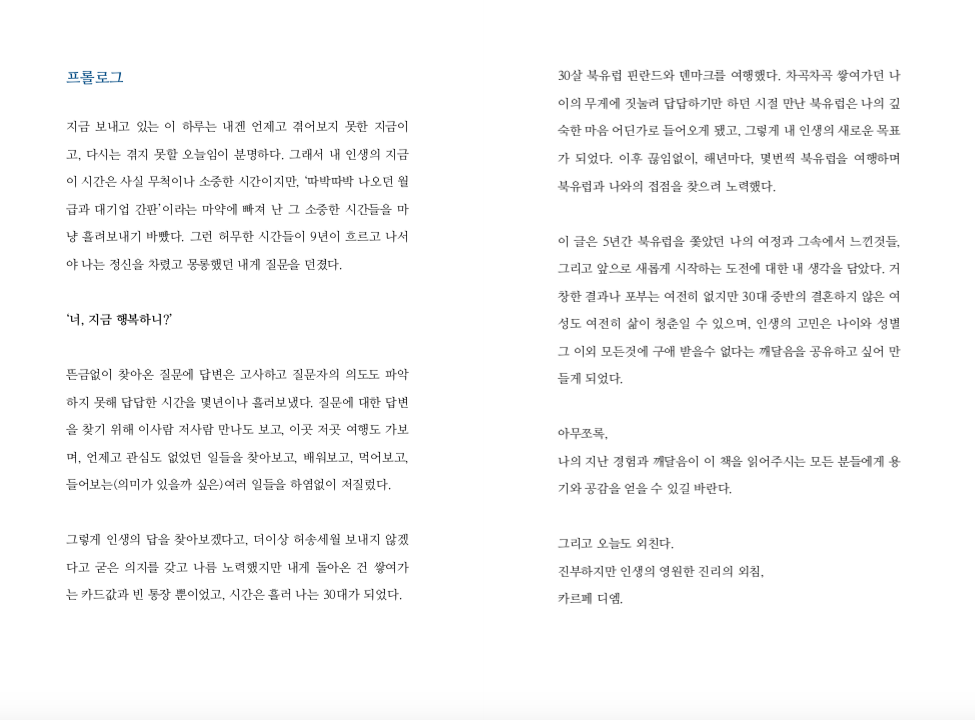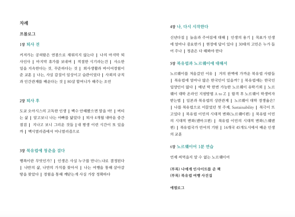 9년간 다녔던 첫 직장 이야기, 5년간 북유럽을 여행했던 사진들, 그리고 노르웨이 유학이 결정되기 전까지