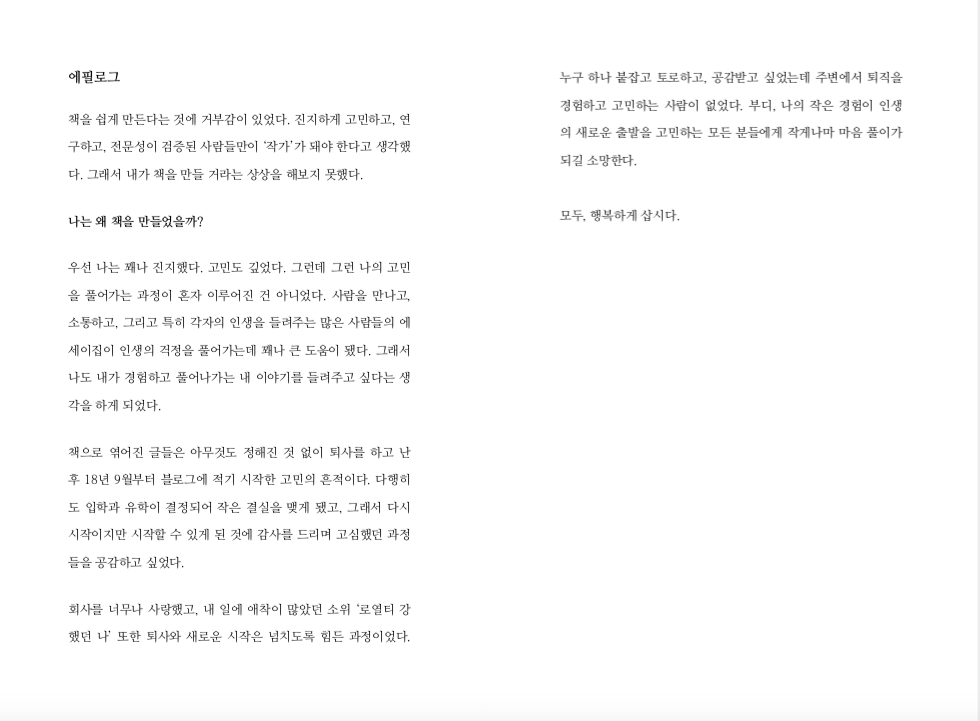 달콤하고 여유로웠던 직장생활을 버리고 새로움에 도전하는 용기를 낼 수 있었던 자신의 경험담을 공감하고 싶었다.