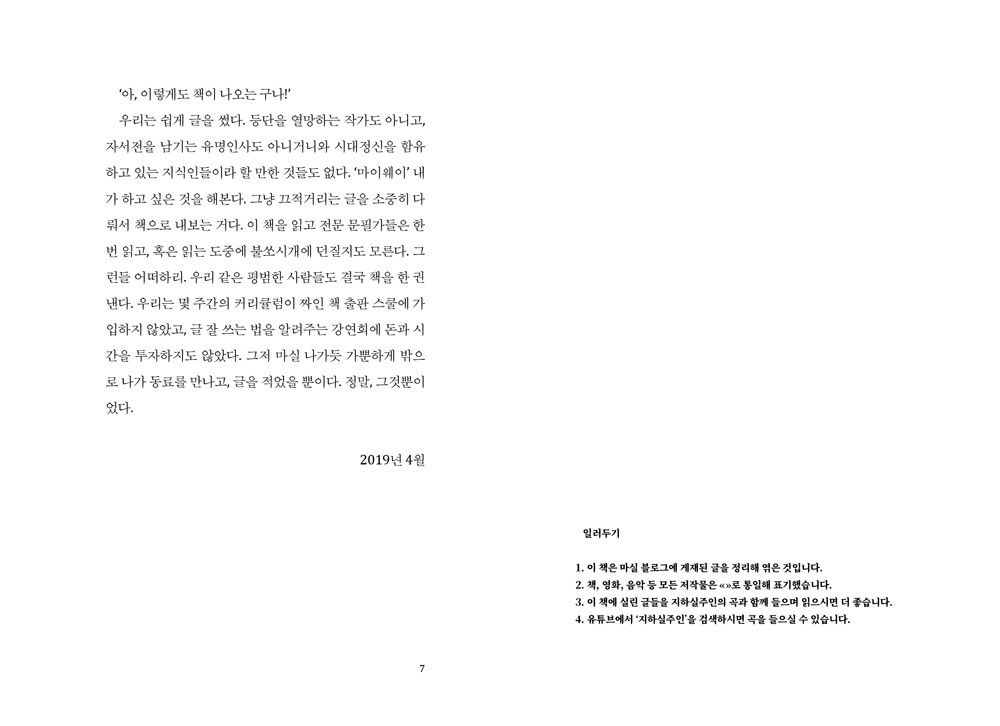2019년 4월 24일 초판 1쇄 발행 / 정가 1만 5000원 / 320쪽 / 무선 / 표지 4도, 내지 먹 1도 / 판형 127×187mm, 판면 79×137mm / 표지 몽블랑 210g, 내지 이라이트 80g / ISBN 979-11-966816-0-9 (03800)