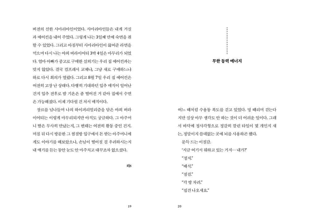 달을 향한 내 관심은 어릴 때부터 시작했던 것 같다. 걸으며 올려다 본 달은 나와 보폭을 맞춰 걷고 있었고 학 원을 나오면서 본 달이 집에 와도 내 머리 위에 그대로 있어서 나는 달이 나를 따라오는 게 분명하다고 믿게 됐다. 만화 속에서만 보던 비밀친구 같은 존재가 나에게도 생긴 것 같아 흐뭇했고, 내가 약간 특별한 것 같은 기분에 으쓱했다. 지금 생각하면 단단히 착각을 했던 것이지만 그 당시 달은 나의 자랑스러운 비밀이었다. (…) 멀리 떨어져 있는 남자친구와 통화를 하며 지금 달이 보이냐며 우리가 함께 있다고 믿었고, 잠시 겪었던 외지에서 타향살이 중에도, 어릴 적 시험을 망치고 혼자 모르는 길을 마냥 걷던 밤에도 내 머리 위에서 달이 같이 걸어주었다. 내가 겪어온 모든 감정을 알고 있는 달은 그렇게 진짜 비밀친구가 돼준 셈이다. _달