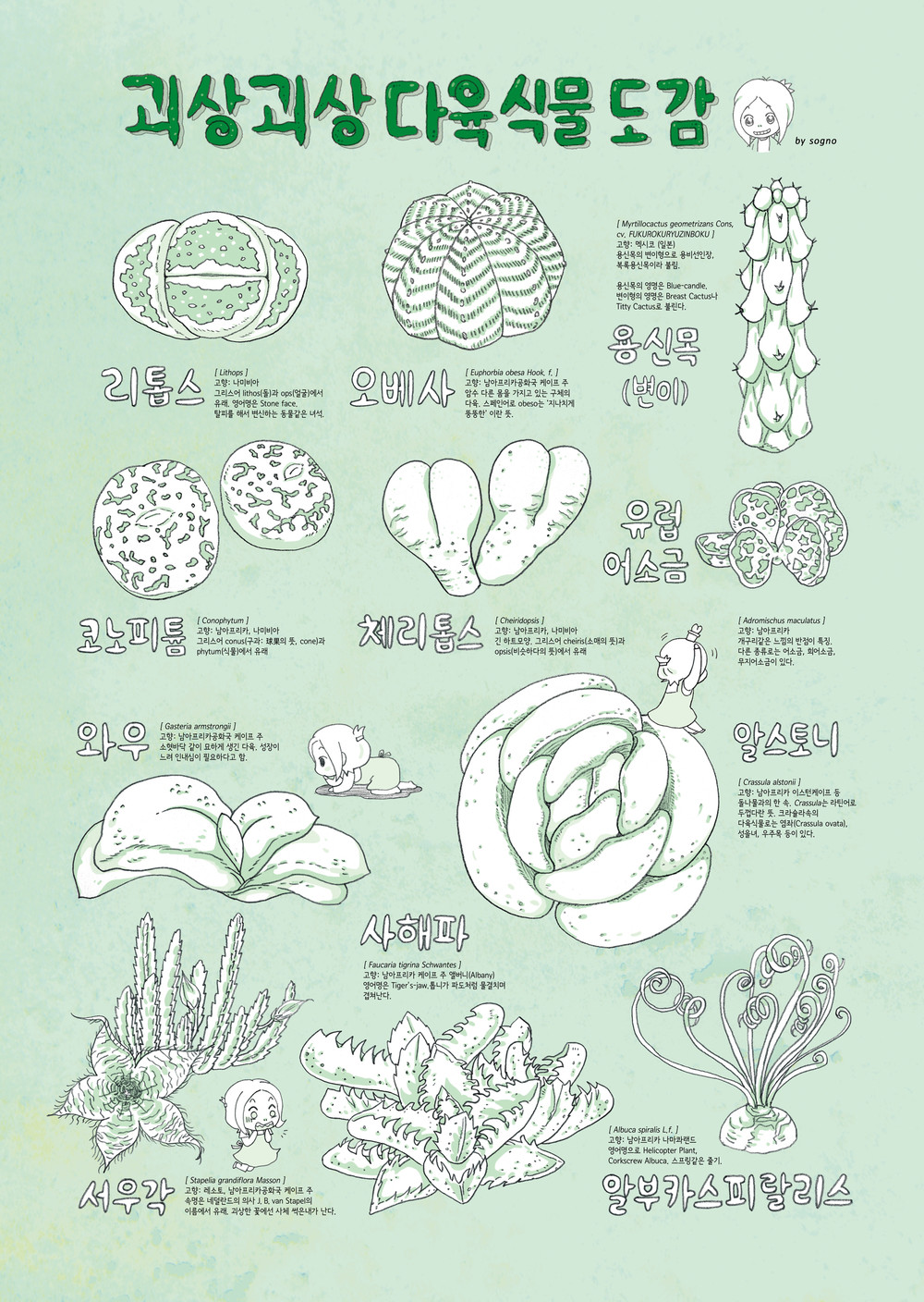 귀여운 다육식물 일러 엽서와 ‘괴상괴상 다육식물도감’ 포스터를 함께 드립니다.