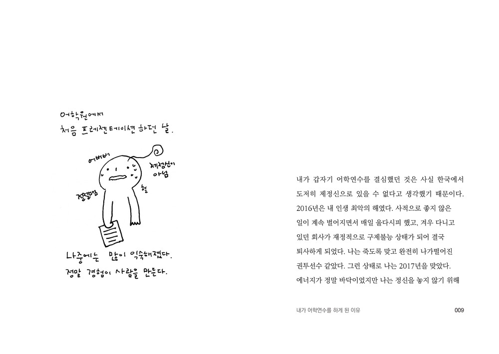 직장을 그만두고 어느 날 갑작스럽게 어학연수를 가기로 결심했습니다.