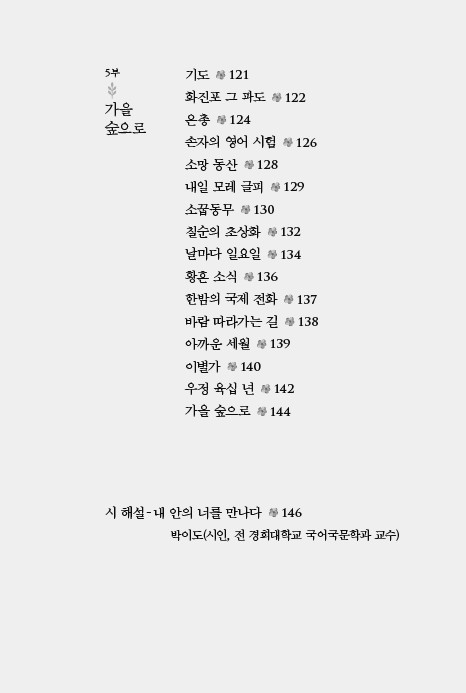시 해설-내 안의 너를 만나다 박이도 교수(시인, 전 경희대학교 국어국문학과 교수)