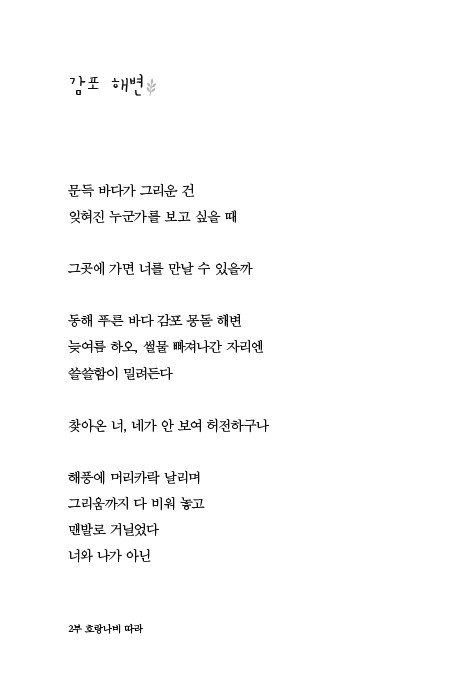 기억 속의 사람들을 대상으로 2인칭 대상인 ‘너’는 내 안의 또 다른 ‘나’임을 발견하고, 깊은 연민의 정을 느끼는 독자