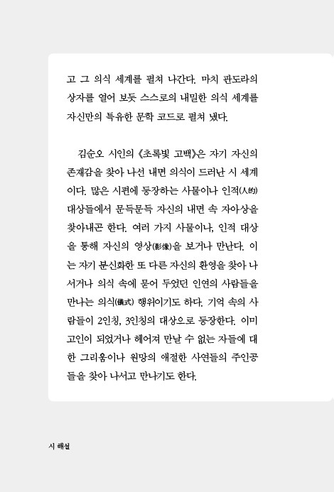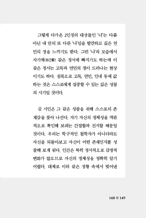 시를 통해 스스로의 존재감을 찾아 나서며 정체성을 확인하고 성찰하는 간절함과 진지함을 구도하는 독자