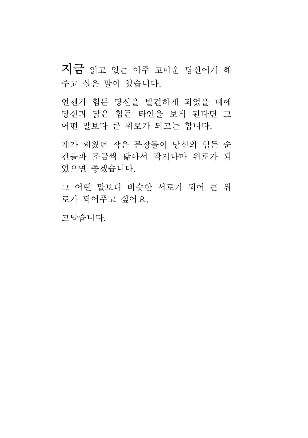 (또는 책의 첫부분인 '고마운 당신에게'가 독자들에게 하고 싶은 말을 실어놓은 것 입니다.)