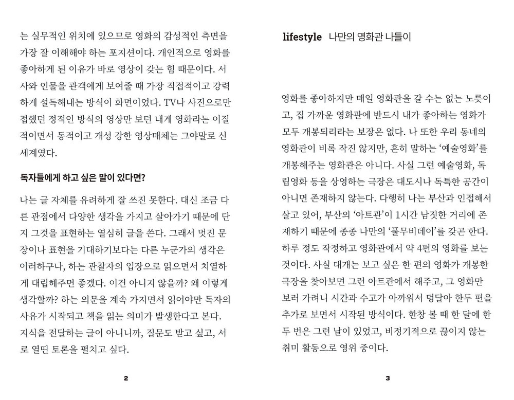 작품 리뷰를 쓰거나 배우에 관한 이야기를 나눌 수도 있고, 개인적인 라이프 스타일이나 영화제에서 겪은 흥미로운 일화를 다룰 수도 있습니다. 카메오처럼 수 많은 영화 콘텐츠들 사이에서 잠깐이나마 등장해 영화를 사랑하는 관객의 시선과 생각을 독자들에게 전합니다.