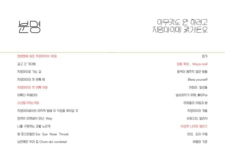 1. 제목 : 분명 아무것도 안 하려고 치앙마이에 갔거든요