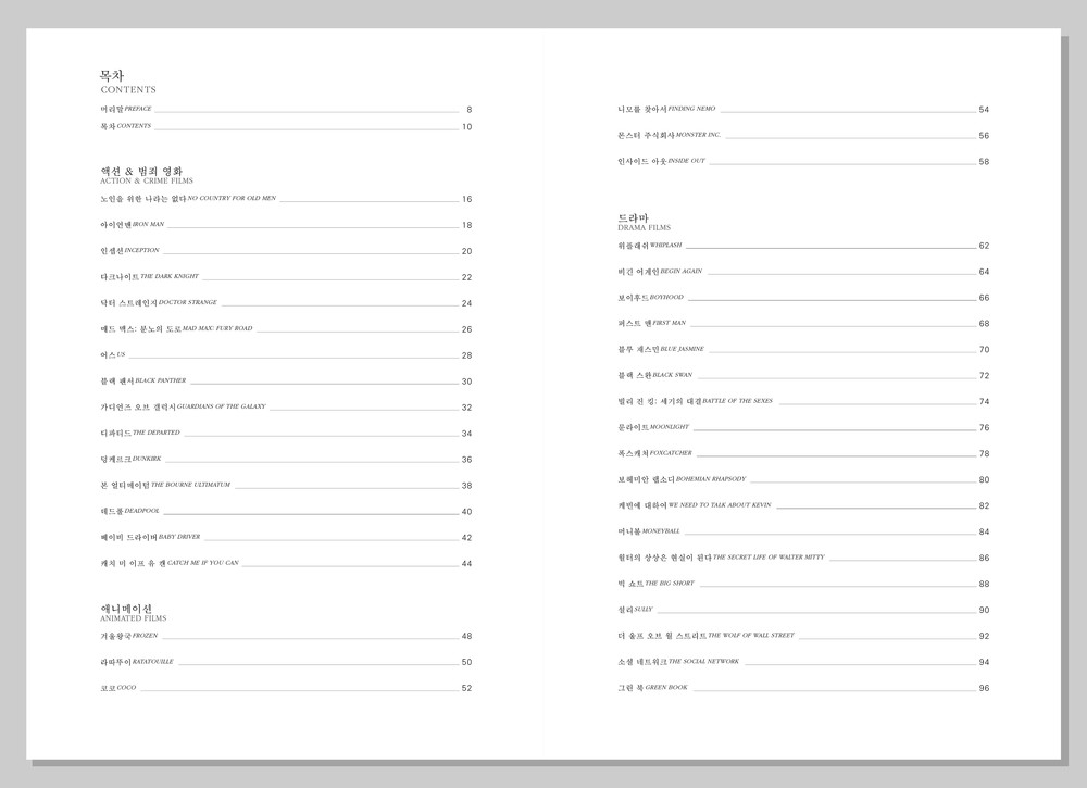 72편의 영화를 미니멀리즘을 통해 그린 것을 묶어 책으로 완성하였습니다.