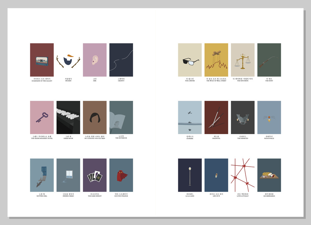 책은 영화 포스터를 미니멀한 느낌으로 다시 그린 일러스트 책 입니다.
