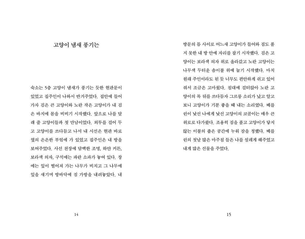 추운 날씨 탓에 볼이 빨개지는 날에 난로도 틀지 않았는데도 따뜻했던 방안에서는 고양이 두마리가 누워 있었다.