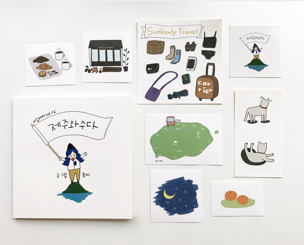 작년 겨울 갑자기 홀로 떠나게 된 제주여행의 기록을 담았습니다. 아무런 계획도 목적도 없이 떠나게 된 여행이었지만, 그 어떤 여행보다도 편안하고 즐거운 여행이었기에 그 이야기를 함께 나누고 싶은 마음이 들었습니다. 4박 5일 동안 다니고 머물렀던 곳과, 보고 듣고 만난 사람들을 어설프지만 사진이 아닌 그림과 손글씨로 담았습니다.