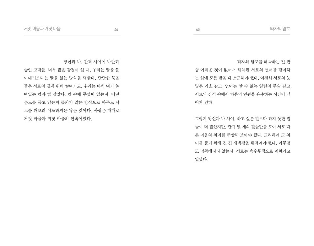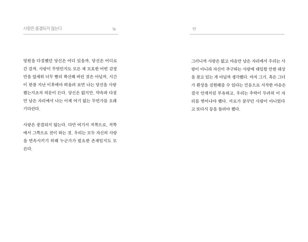 지난 시간을 되감아가며 상처를 하나 둘씩 꺼내어 봅니다. 사랑이 극복되기 위해서는 그것들을 낱낱이 바라봐야 했어요.