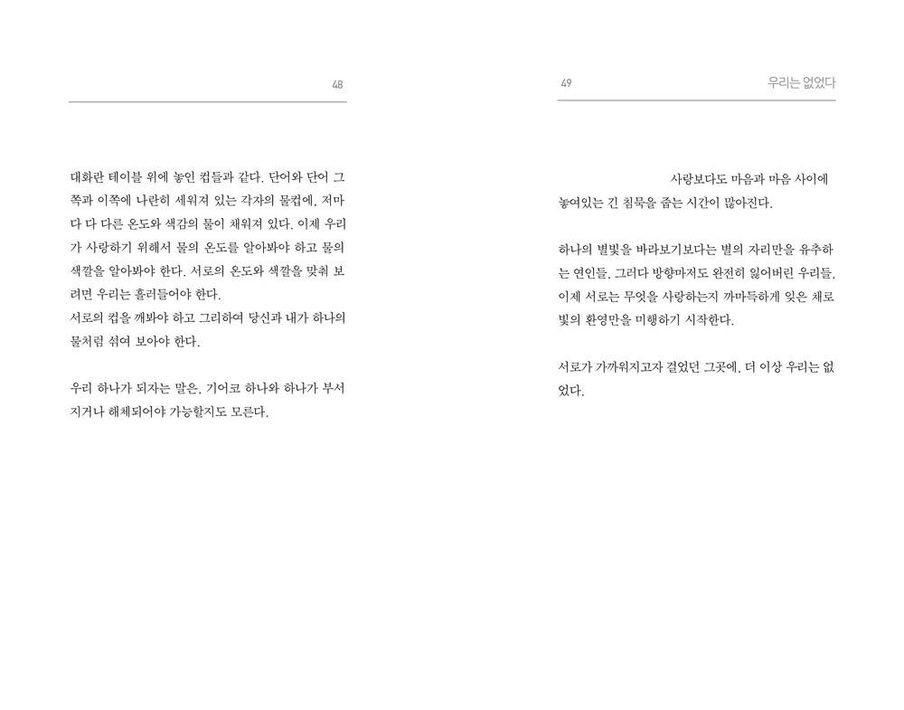 누군가를 만나 사랑하기 이전에, 우리는 먼저 이별을 배워야 한다고 생각했습니다.