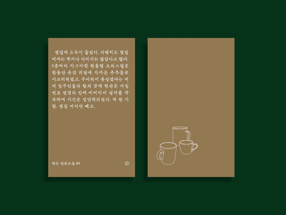 내용 : 옆집에 도둑이 들었다. 다행히도 옆집 여자는 죽거나 다치지는 않았다고 했다. 5층짜리 자그마한 원룸형 오피스텔은 한동안 온갖 괴담에 가까운 추측들로 시끄러워졌고, 무서워서 못살겠다는 여러 입주민들의 항의 끝에 현관문 비밀번호 변경과 진짜 씨씨티비 설치를 약속하며 사건은 일단락되었다. 딱 한 사람, 옆집 여자만 빼고.