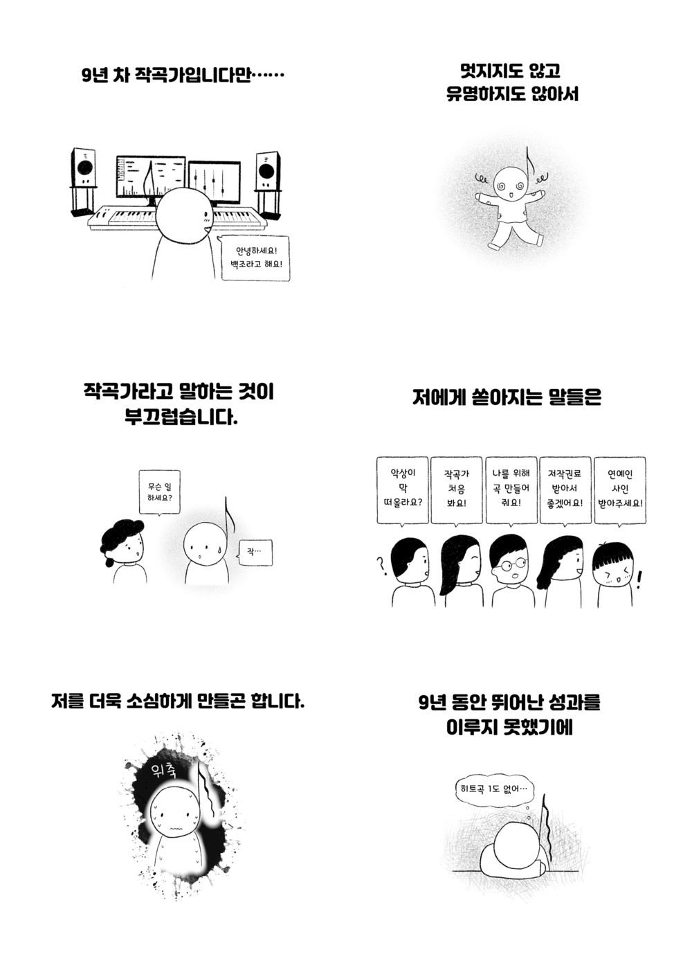 <작곡가입니다만>은 9년 차 작곡가인 저자의 자전적 만화 에세이로