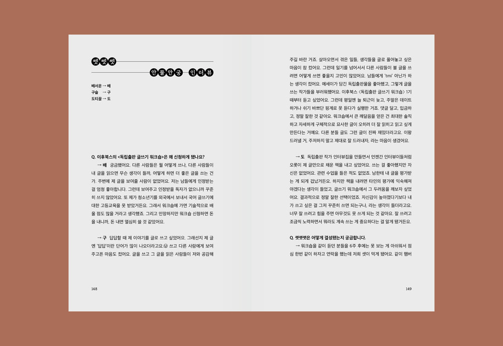 하루하루 작은 것들을 꾸준히 쌓아가자는 뜻으로 지은 ‘티끌’이란 이름. 원대한 꿈이라고 없을 쏘냐만 원대함을 쪼개고 쪼개면 결국은 티끌이니까. 티끌을 더하고 더하면 조금은 원대해지지 않을까. 그저, 계속.