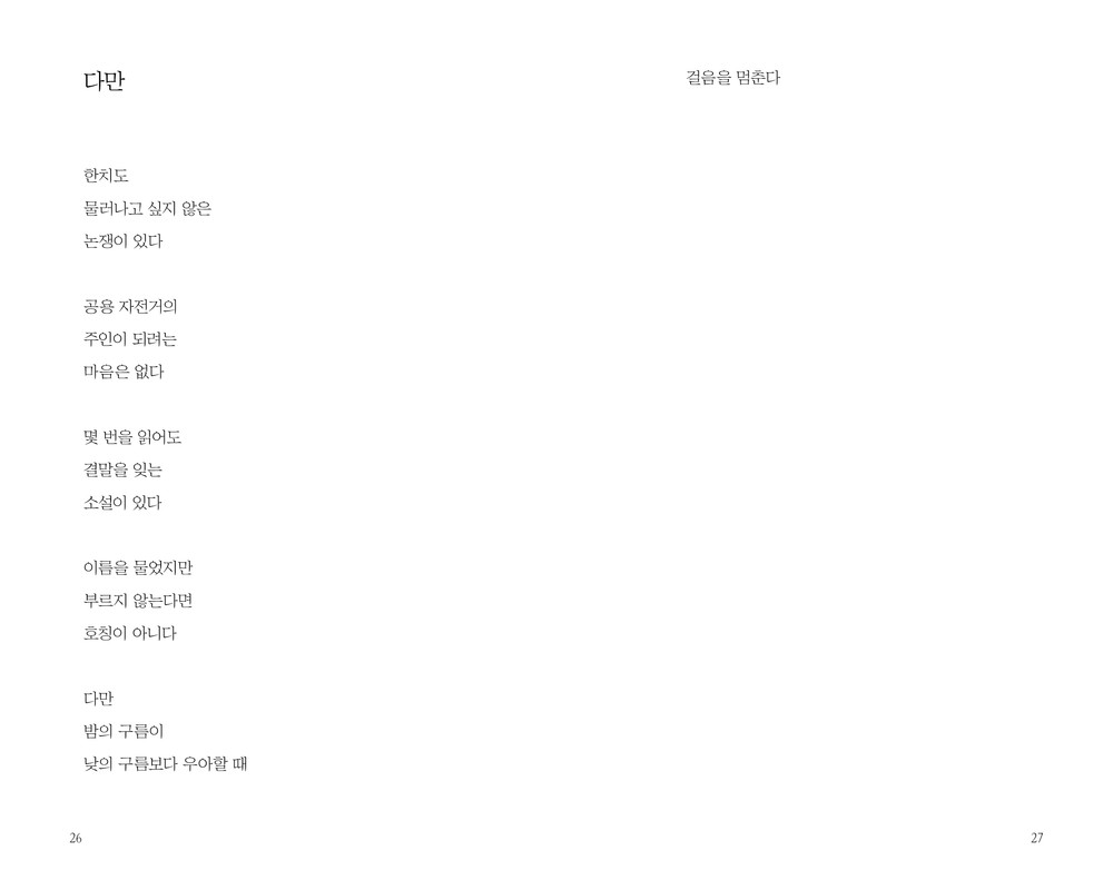 한 권이 하나의 이름이기도 지은이의 내면, 혹은 그를 둘러싼 세계이기도 그저 누군가 읽어주어야 가치를 지닐 말이기도 합니다. 무엇이든 상관없습니다. 당신이 이름 붙인 그대로입니다.