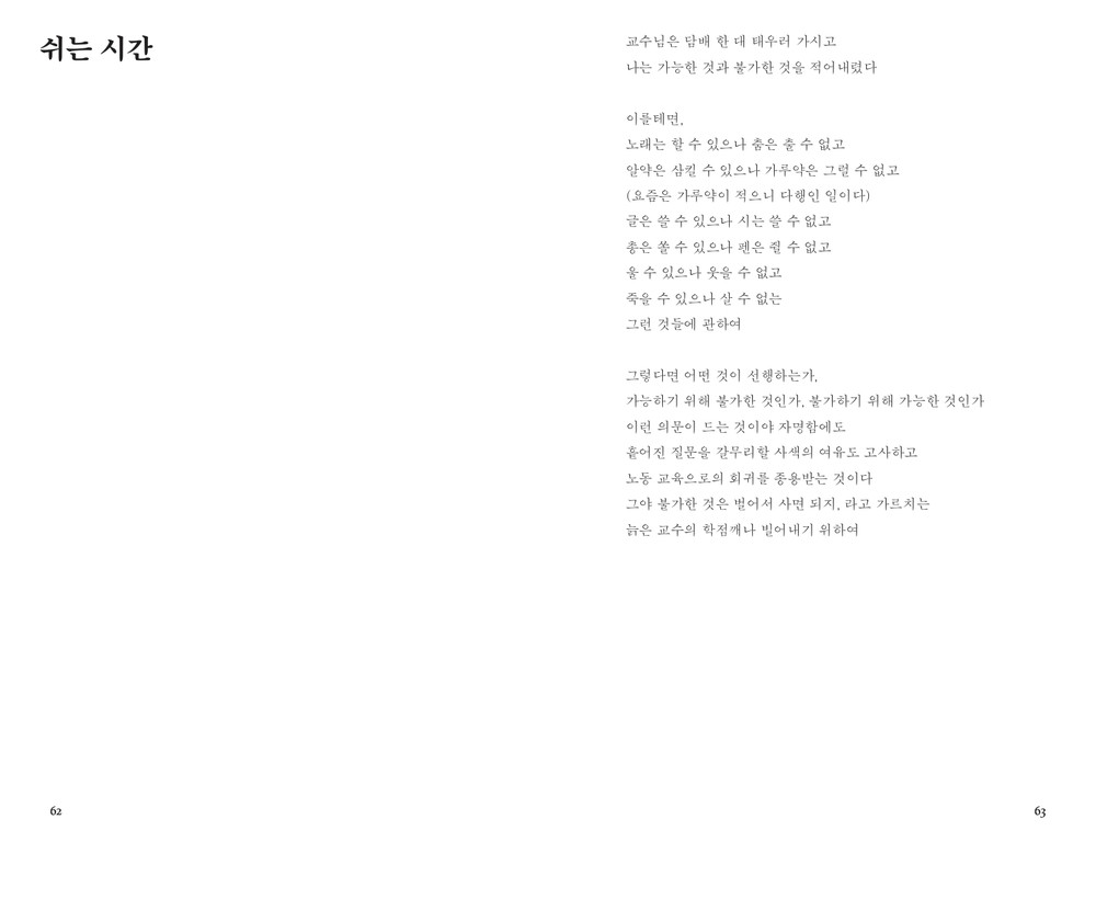 그렇게 적어둔 글을 찬찬히 살펴보다보면 시간도, 장소도 다른 곳에서 산발적으로 태어난 문장들이 어떤, 점에서 수렴하기도 합니다. 그러면 저는 그들을 보듬어 책으로 엮어내는 거예요. 그 결과물이 이렇게 또 하나 책으로 완성되었습니다. 이제 이 친구들은 제 곁을 떠나 여러분과 상응하여 새로운 감정을 불러일으키겠죠. 그런 일련의 화학작용을 지켜보는 것이 작가의 최종적인 목표가 아닐까 싶습니다.