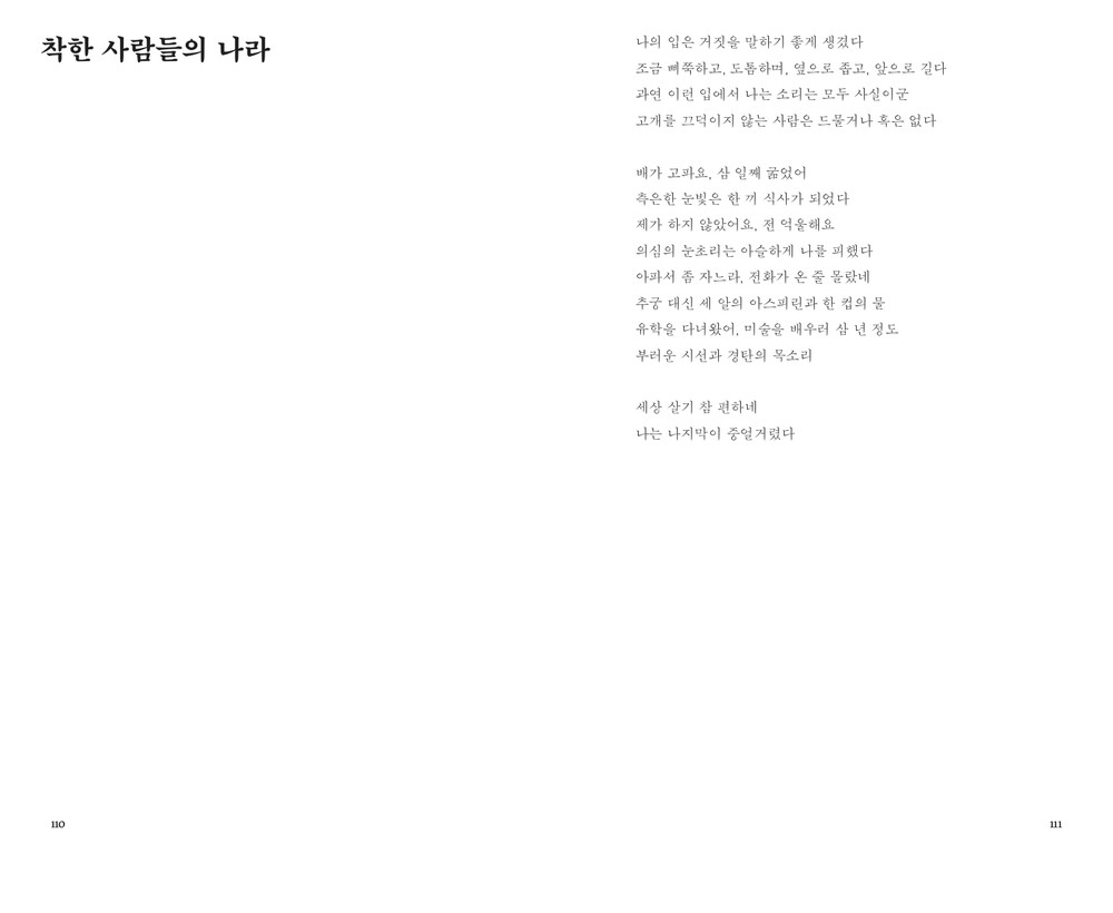 이따금 적을 때면, 삶의 일부를 떼어내어 매만지는 기분이 듭니다. 대체로 작고 얕은 나의 삶에 때때로 깊은 골이 생긴다면 그곳에 고인 맑은 담수를 (때로는 새까맣기도 합니다만) 퍼내어 쏟아붓는 과정이겠죠. 활자로 만든 작은 잔에요. 그 글은 때로는 시가 되고 때로는 줄글이 되기도 하는데, 그렇게 하는 데 제 의도는 크게 중요치 않다는 느낌이 들어요. 그러니까 적어낸 글들이 나의 손에 스스로 잉태하여 숨을 쉬는 그런 과정이, 작은 즐거움이 되곤 했습니다.