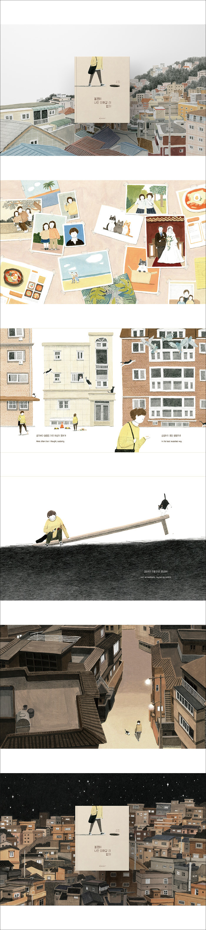 주인공은 불길한 꿈을 꾸고 일어난다. 그리고 오늘도 좋지 않은 일이 일어날 거라는 불운을 예감하며 집을 나선다. 예상처럼 문밖으로 한 발짝 내딛는 순간 주인공의 불행은 이어진다. 작고 크고 사소하고 중하며 각가지 크기, 무게와 색을 가진 불행들이 주인공의 일상을, 아니 삶을 채워 나간다. 주인공이 걷고 있는 굽이굽이 굴곡진 골목 끝에는 무엇이 기다리고 있을까. 폭죽이 터지듯 연속된 불행은 언제쯤 끝나는 것일까.