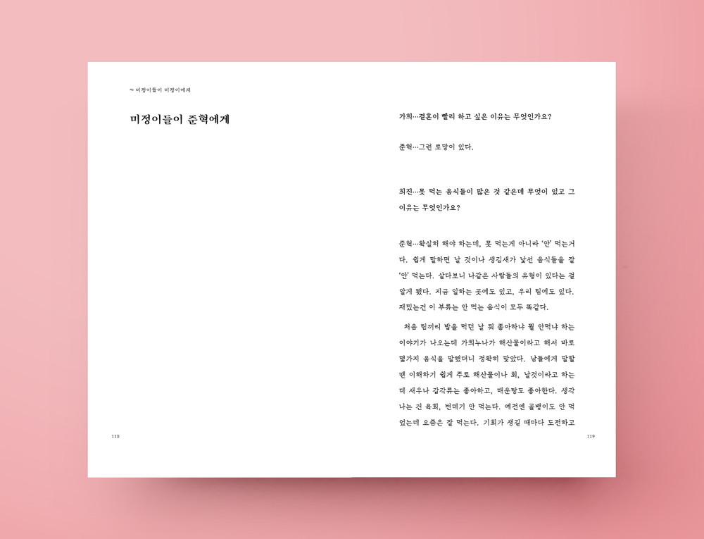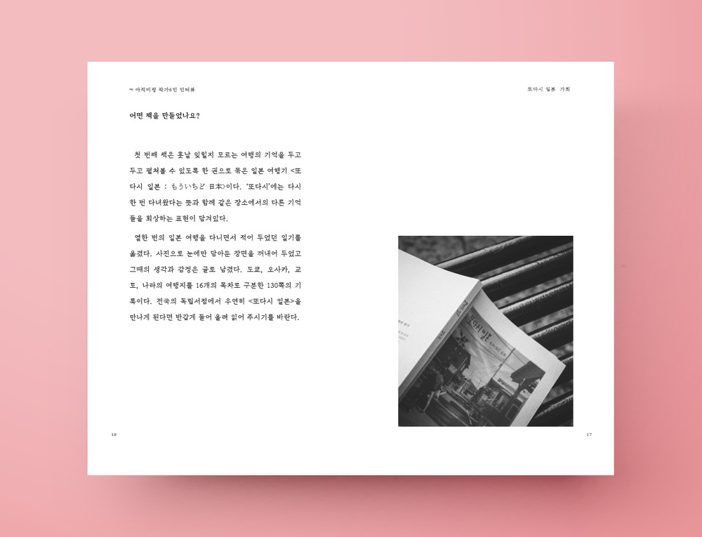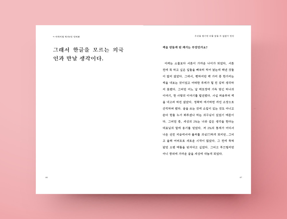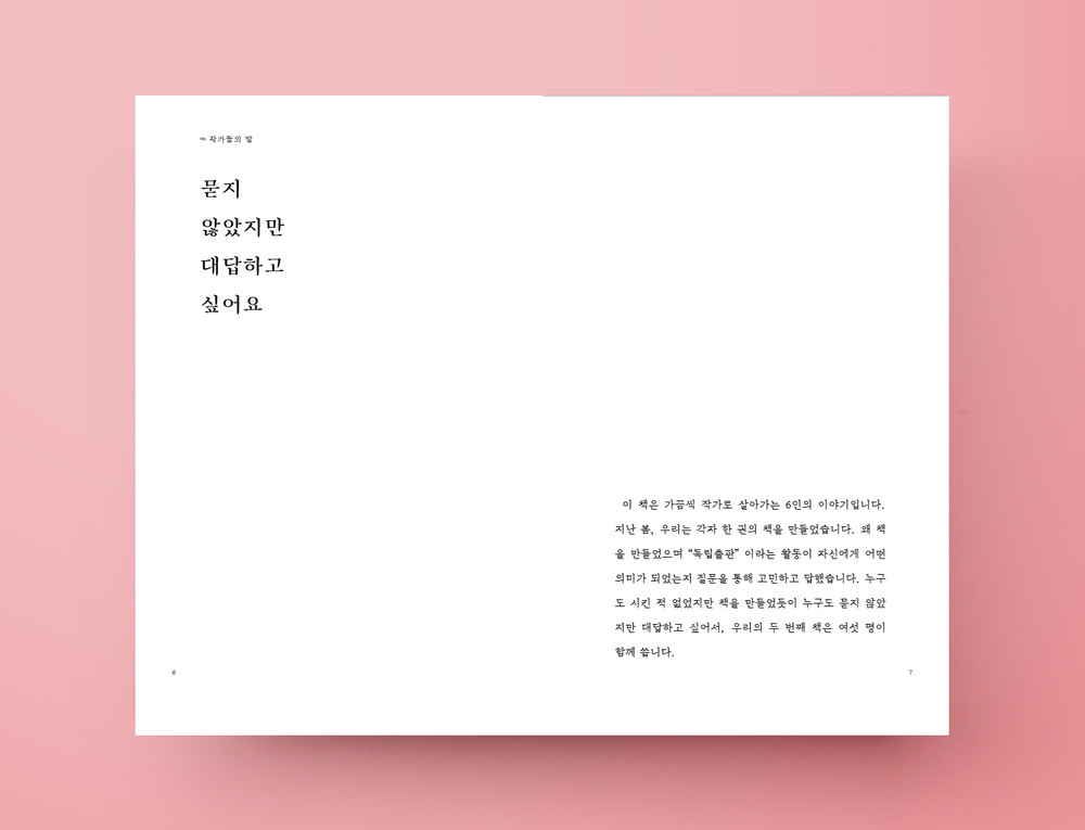 왜 책을 만들었으며 "독립출판"이라는 활동이 자신에게 어떤 의미가 되었는지 질문을 통해 고민하고 답했습니다.